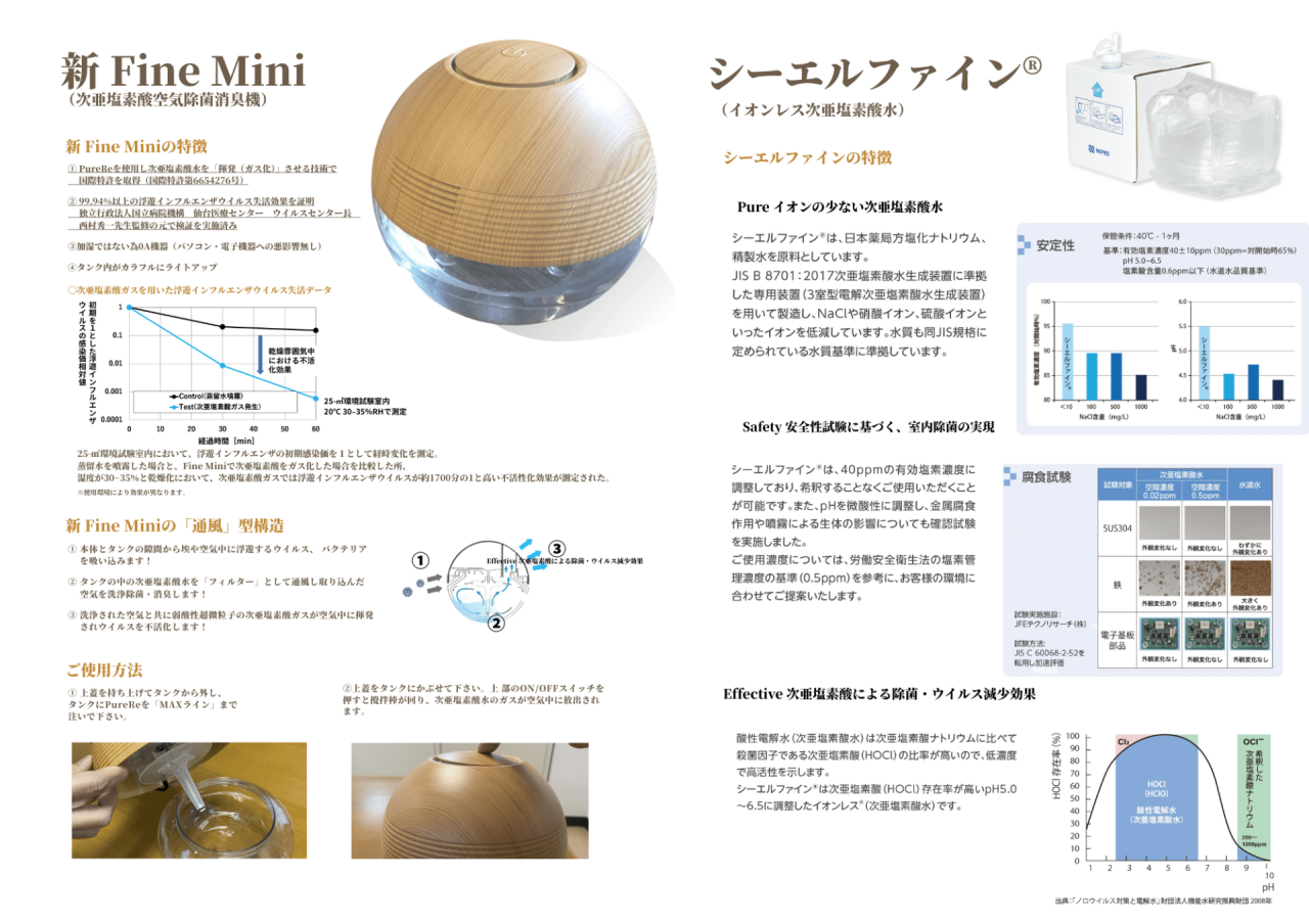 確かな作用が認められた高品質な商品をお客様へご提案し、人々が笑顔で暮らせる環境づくりをサポートできるように努めております。その一環として、空気除菌消臭機として確かな作用が認められたFine MiniとJia-Useをあわせてお買い求めいただけるファインミニセットを販売中です。