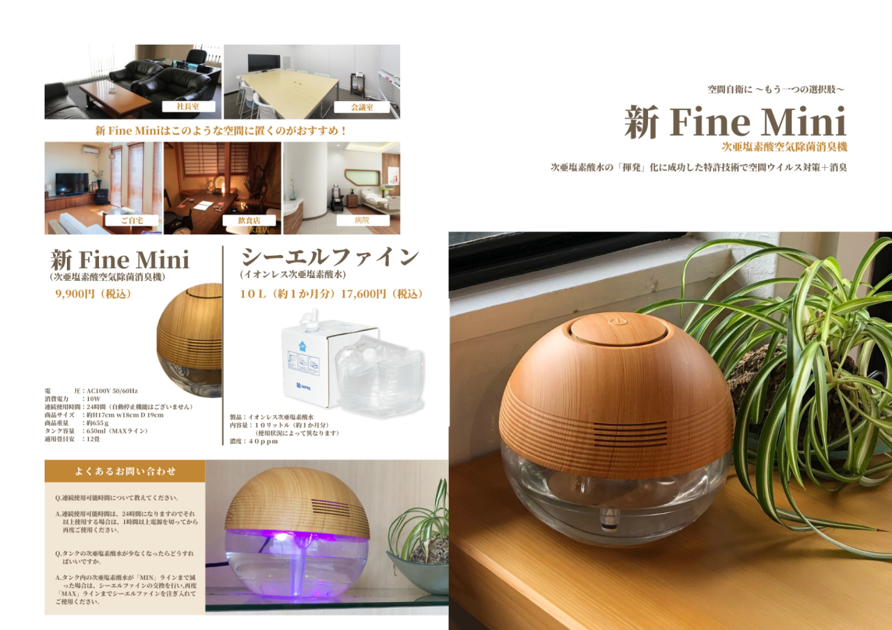 高い安全性が実証された安心のファインミニで24時間、お部屋を除菌してください。