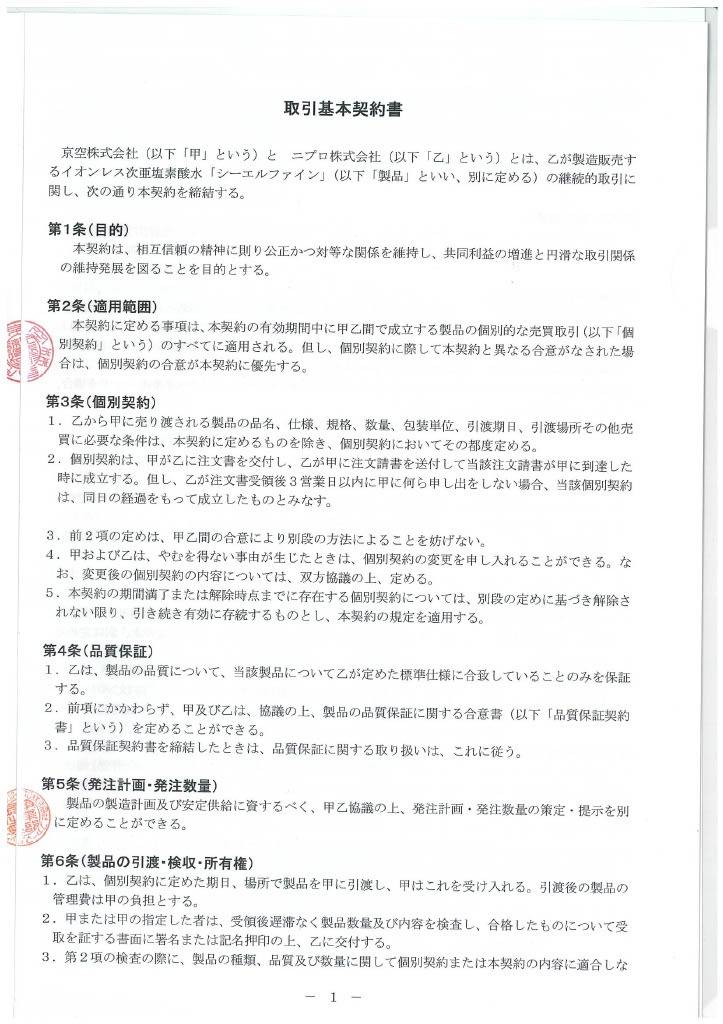 ニプロ株式会社から取引基本契約書が届きました